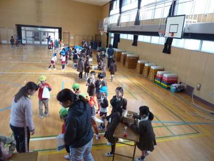 1年生の子どもたちはクラスごとに4つのお店を準備して、来年上級生としてお世話することになる新1年生の友達をワクワクして待っていました。