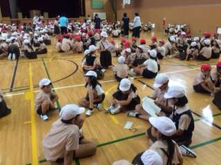 今年初めて実施する、全校遠足を成功させるために、めあてや注意事項を確認しました。6年生のリーダーシップと他学年が、リーダーを困らせないように行動することが大切です。