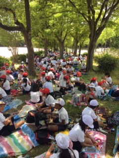 オリエンテーリングが終わり、お弁当です。
