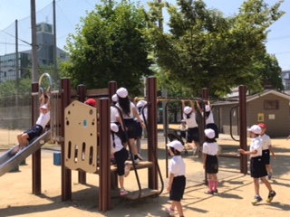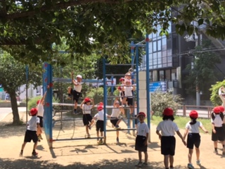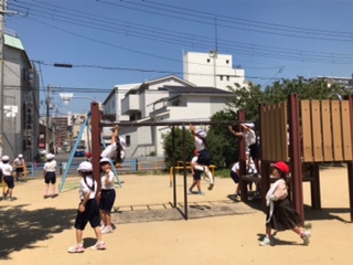 6月19日、一年生が生活科の学習で神路公園に来ました。