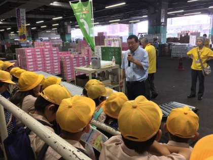 五年生は、社会見学で、 大阪市中央卸売市場にきています。