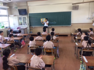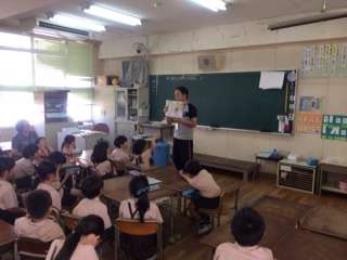 2時間めは、1、2年生は、教室で、地震に関する紙芝居などで学習