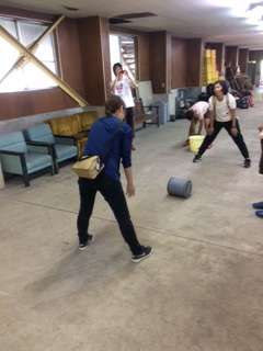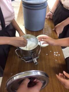 材料の入った容器を、氷の入った外容器に入れ、後は、ひたすら転がします。
