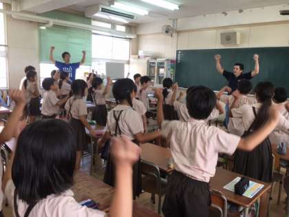 東中本小学校では2学期から月に1時間ずつ1〜4年の全学級でマット・ケリーさんというネィティブの講師の先生をお招きして英語の勉強をすることにしました。