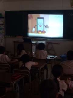 今日、4年1組ではスマートフォンなどネットに潜む危険性について学習しました。