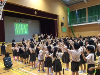 開会式では、いつもの「喜びの歌」を歌い踊りました。