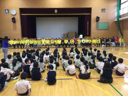 一年生が地域の方々と一緒に昔遊びを楽しみました。