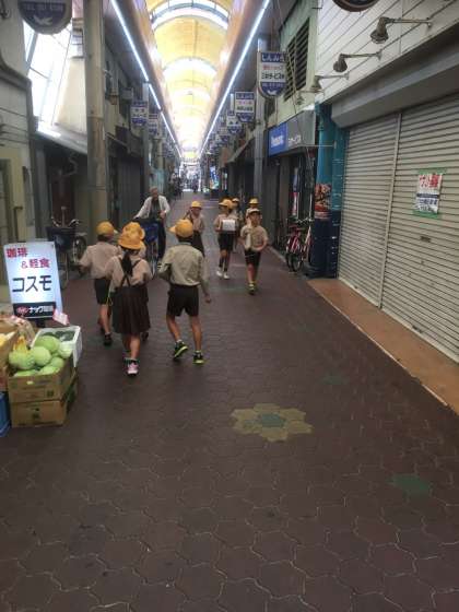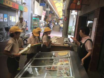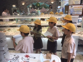 グループでお店を回り、工夫しているところを見つけたり、インタビューしたりしました。