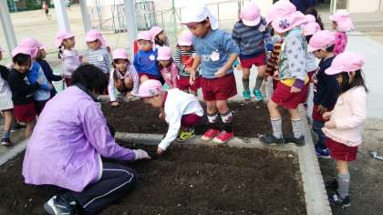 スナップエンドウ豆の種をさくら組さんが植えました。