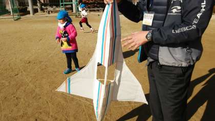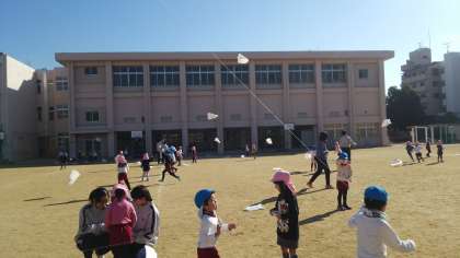最後に園長先生手作りの凧をあげて終わりました。高く上がって、見事でした。
