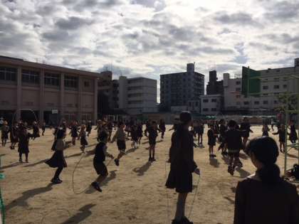 耐寒かけ足中の20分休みは縄跳び集会です。