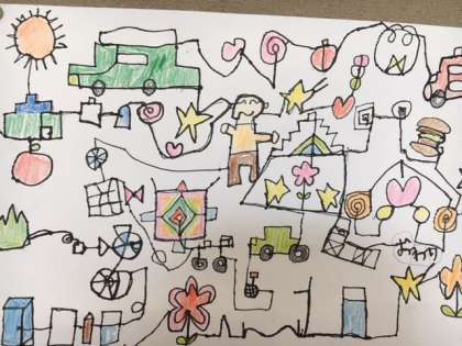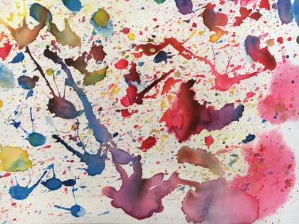 4年生は絵の具でたらしこみによる絵の具のにじみや、サインペンの一本の線からの表現に挑戦しました。