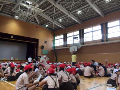 本日配布の手紙にも書いていますが、明日は体操服で登校します。活動用の紅白帽子は班のシールを貼りましたので、学校に置いています。明日は黄帽子をかぶってきます。