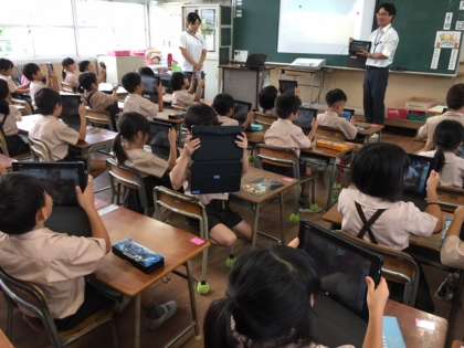 今年は東中本小学校にICT支援員さんが年間22時間来てくださっています。今日は1年生が初めてのタブレットに挑戦しました。ログオン、ログオフ、そしてカメラの機能。上手に操作できました。