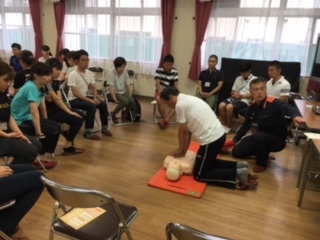 本日放課後、多目的室で幼少合同で救命救急講習会を開催しました。保護の皆様も教員も、いつでも、どこでも、尊い生命を救うために真剣に講習を受けました。