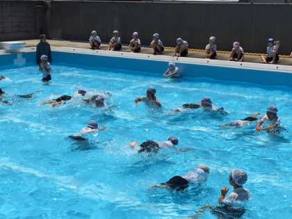 プールの換水日に合わせて、例年、2.4.6年生では着衣泳を実施しています。