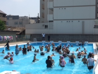 今日は、6年生とそら組が、プール交流を楽しみました。小学校のプールにドキドキしている子どもも、優しいお兄さんお姉さんに、おんぶしてもらったり、ビート板で引っ張ってもらったりしながら、気持ちよく泳ぎ気分を味わいました。