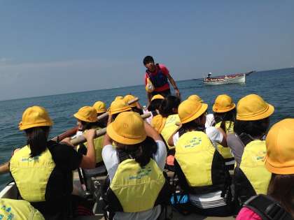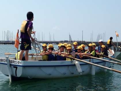 カッター訓練は男子のグループをつくり、沖の方まで行った。