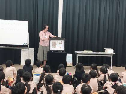 また、読み聞かせを通して、図書館の使い方やルールを学び、図書館の本を汚さないように大切に扱うことや、みんなが気持ちよく図書館を使えるように静かに過ごすことについても改めて学びました。