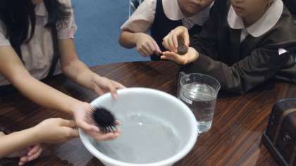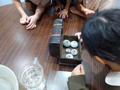 たくさん生き物の知識を教えてもらいました。ウニやザリガニの感触もみんなで触って確かめました。