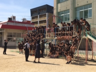 6年生が卒業に向けてのアルバム写真を撮り始めました。その横で1年生は体育の授業。学校の巡り行く定めのようなものを感じた時間でした。6年生は1年生の憧れの存在としてあと5カ月責任ある行動で頑張ってほしいものです。