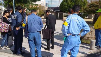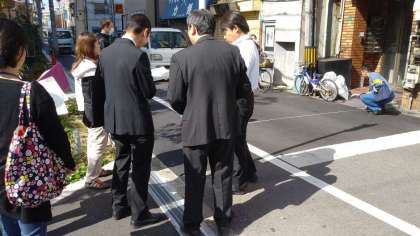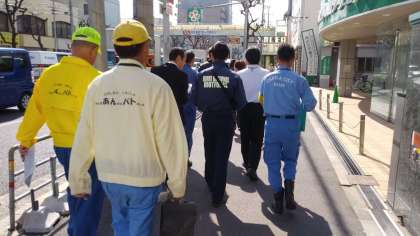 大阪市通学路交通安全プログラムに基づき、学校・PTA・安パト・区役所・警察・建設局のみなさんで、午前10時から交通安全総点検を行いました。
