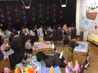 1年生の子供達は、本日招待を受けて、幼稚園の子ども展覧会を見せてもらいました。