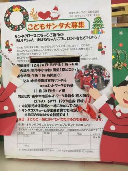 東中本小学校の名物になりつつあるこどもサンタの催し。