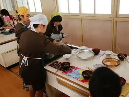 みんなが着ているエプロンも家庭科で作ったものだそうです。
