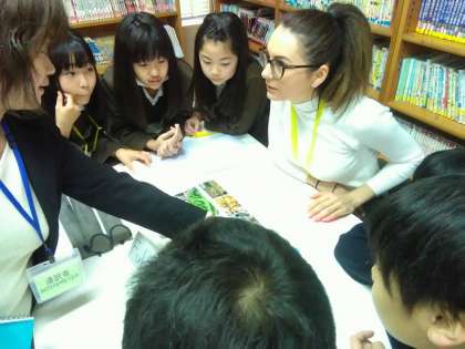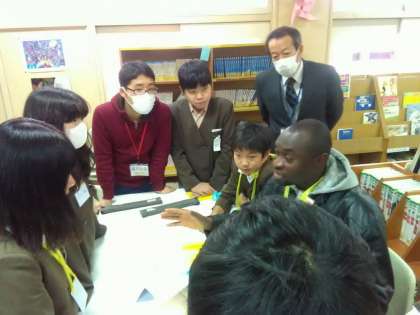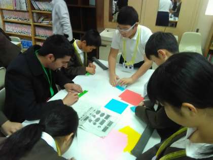 3時間目、6年1組は図書室で、2組は家庭科室で交流の時間を持ちました。
