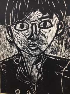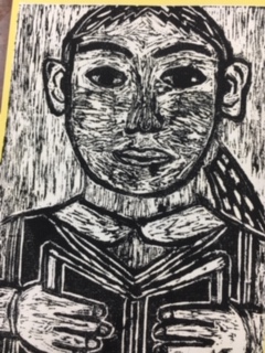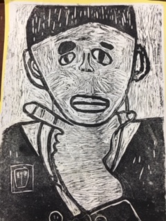 4年生は初めて彫刻刀を使って、木版画に挑戦しました。写し取った下絵の線をマジックで太くし、筋肉の流れを考えながら、彫刻刀を動かしました。