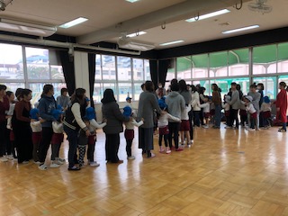 修了式まで残り少なくなってきました。今日は、お別れ会をしました。さくらぐみとそらぐみが一緒に歌ったり、ふれあったり、楽しく集って遊びました。その後、そらぐみが保護者の方と、ドッジボール、しっぽとり、じゃんけん列車をして遊び、思い出づくりになりました。遊戯室でみんなで昼食をとり、楽しい一日を過ごしました!