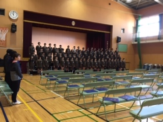 明後日の卒業式を前に、今日は卒業式の予行を行いました。卒業生、在校生ともひきしまった表情と態度で、本番の最終確認をすることができました。