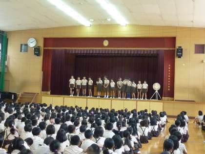 転入生が3名あり、舞台の上でそれぞれに元気な声で「よろしくお願いします。」というあいさつをしました。