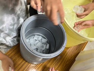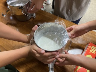 アイスクリームづくりの容器に材料を入れて、準備万端!