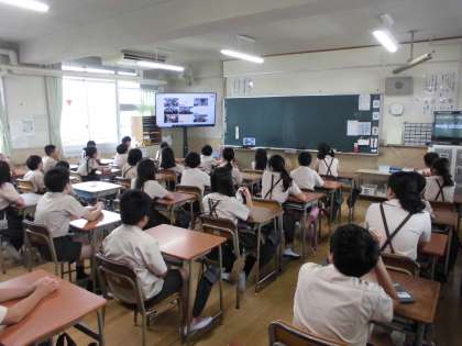 1時間目は、始業式がありました。まだまだ暑いので、オンラインで行いました。
