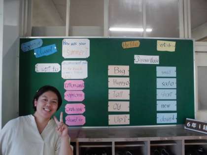 今月は、6年生で学習する過去形についてや対義語を掲示してくれています。