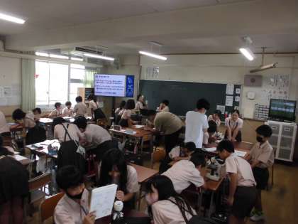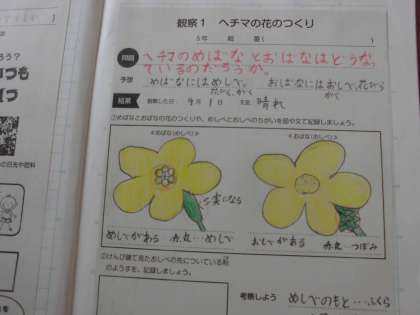 5年生では、顕微鏡をつかって、花の花粉を調べました。ピントを合わすのが大変そうでしたが、班の友達と協力して、見えたときは嬉しそうでした。ノートにも学習したことを丁寧にまとめていて、さすが5年生!!と感心しました。
