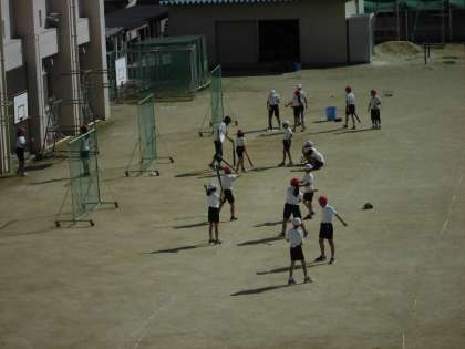 まだまだ暑いですが、子どもたちは、やはり体育が大好き!!とても元気に活動していました。5年生は、Tボールの学習です。バットで打つ練習やキャッチボールの練習などをしました。試合をするのが楽しみですね。