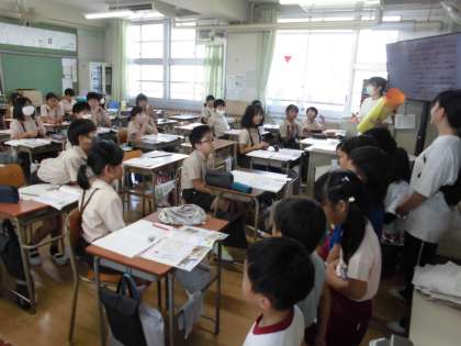 先日、5年生と東中本幼稚園の年長組さんとのプール交流がありました。