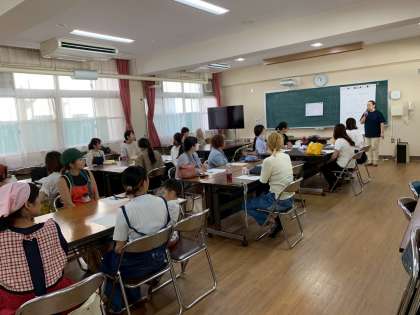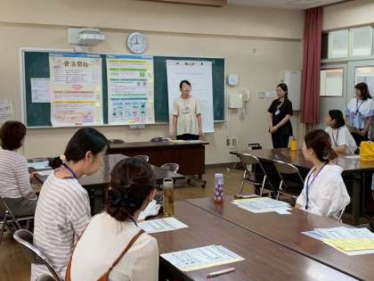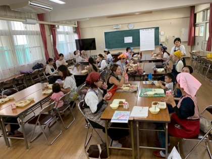 東成区保健福祉センターの方に健康講座をしていただいたり、給食調理員さんや栄養教諭の先生に講話をしていただいたりしました。