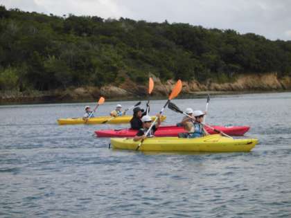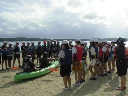 シーカヤックとシェルクラフトの体験活動をしました。