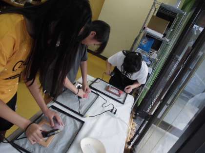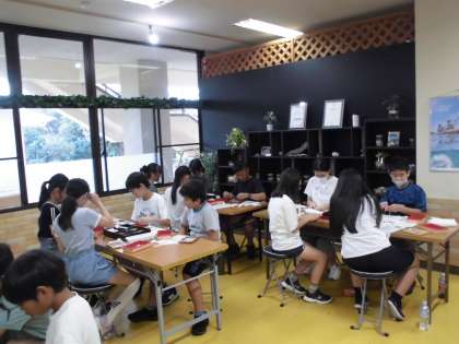 現地でとれる貝殻をたくさん用意してもらって使用しています。SDGSについても学びました。