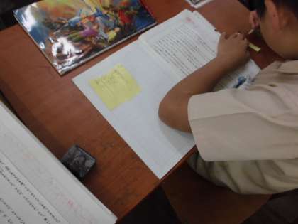 一生懸命に教科書を読んで、大事な言葉を抜き出したり、その言葉をつなげたりしていました。今回、学んでいる「要約のこつ」を使って、今後、自分が興味をもった道具のひみつについて、調べてレポートにまとめていきます。どんな道具のひみつが見つかるか楽しみです。