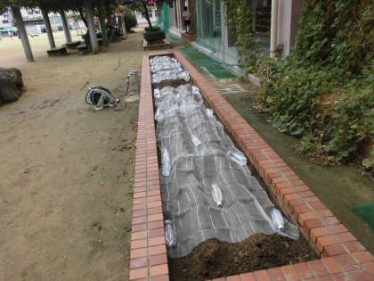 学習園も秋の種植を始めました。校門から入ってすぐのところには、先日環境委員会の児童と小かぶ、にんじん、玉ねぎの種を植えました。鳥に芽を食べられないようにシートもかぶせました。かぶの芽がぞくぞくと出てきています。おいしい実が育ちますように。