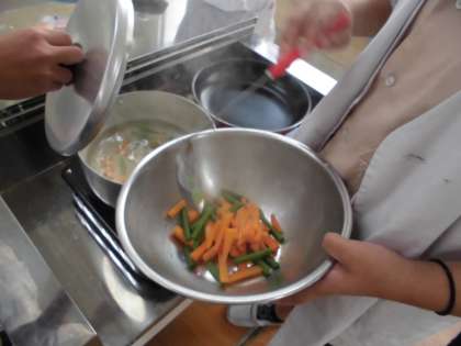 「野菜いため」を作りましたが、硬い野菜は最初にしっかりゆでました。