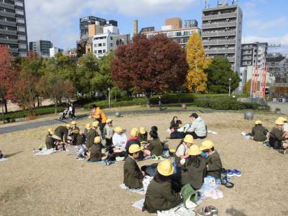 見学前に扇町公園に行って、みんなでお弁当を食べました。