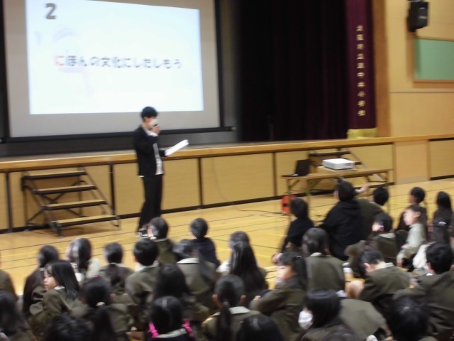 そして、冬休みの過ごし方についてもいくつかお話がありました。安心安全で楽しい冬休みとなるように、今日聞いたことを実行してほしいと思います。