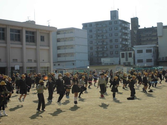 また、今日からなわとび週間が始まりました。音楽に合わせて、いろいろな跳び方をします。