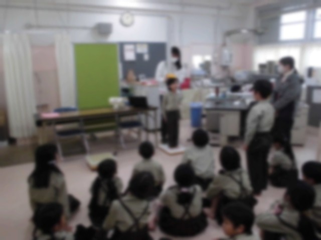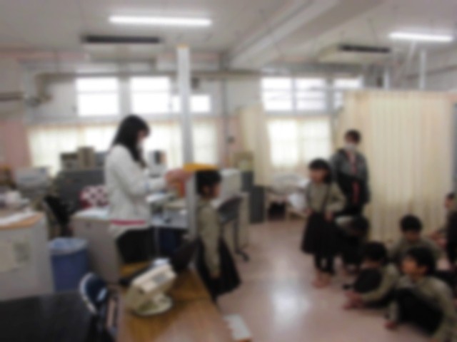 さて、後半は、保健室に移動して、身長と体重測定でした。背筋をピンと伸ばして、どれくらい大きくなったかドキドキしながら計測していました。1年間でどれくらい大きくなったかな?